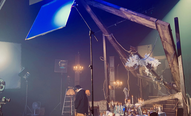 福田暢秀専用美術セット製作工場、美術倉庫 延床面積100坪所有。