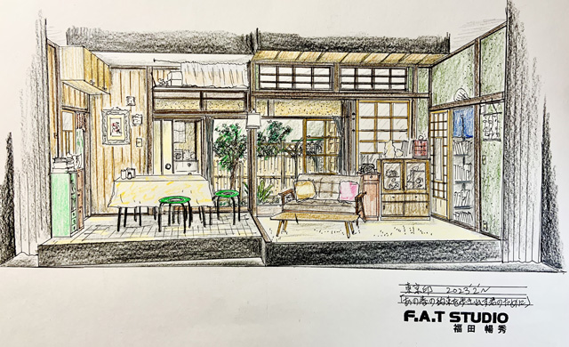 福田暢秀専用美術セット製作工場、美術倉庫 延床面積100坪所有。